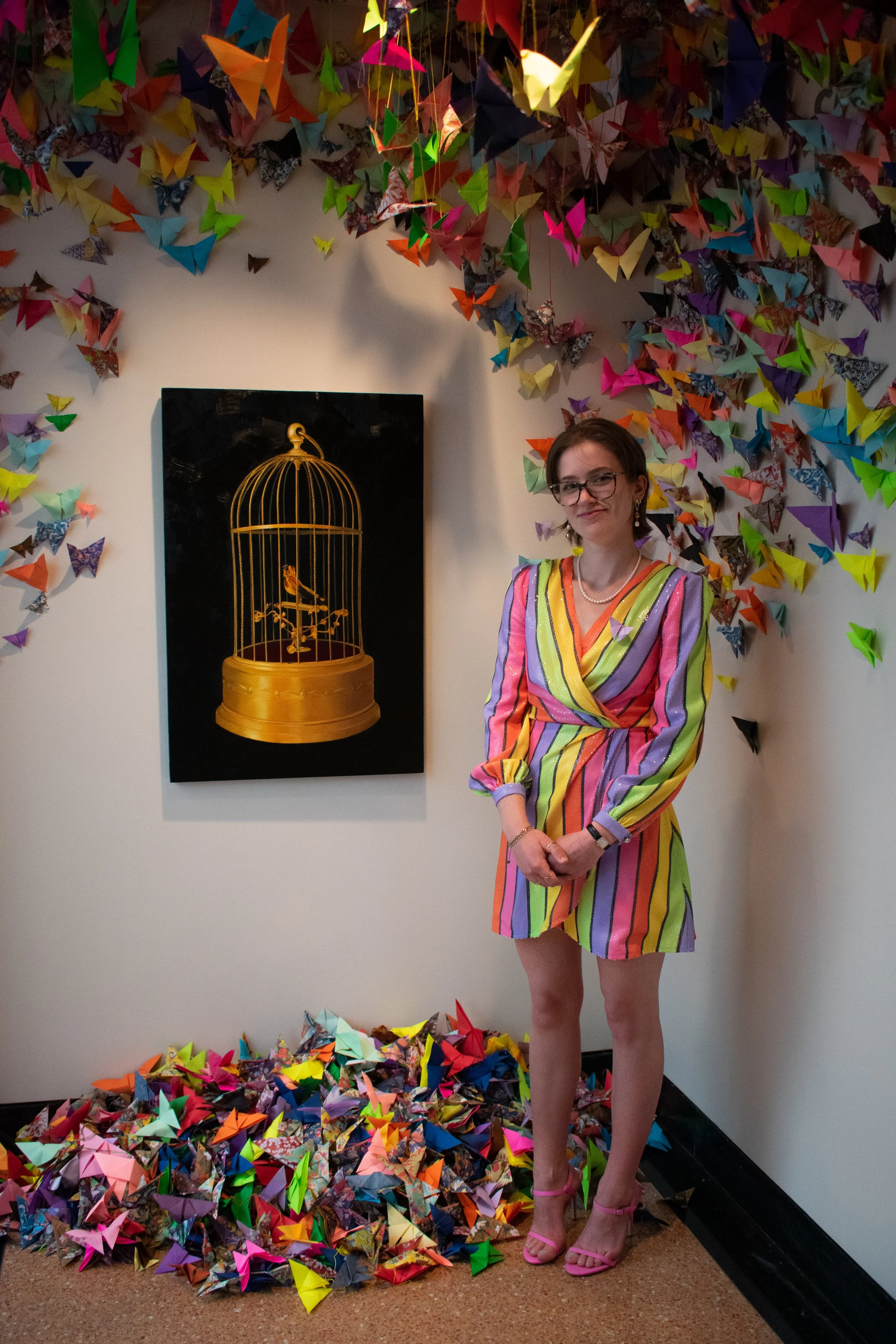 Curse of an Artist was by far my most difficult work I have completed to this day. Over 300 hours of work this 3ft by 2ft piece was created originally as a gift to my mother but became something much more as it was part of my thesis. This piece was to showcase my moms most prized possession, a little wind up tweedy bird cage that used to be owned by her grandmother. It symbolizes a family connection and what objects we hold close to our hearts.